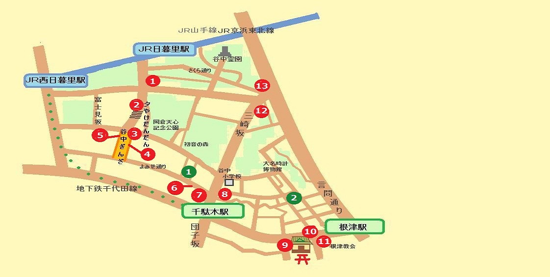 Yanesen bedeutet Yanaka / Nezu / der Sendagi-Rand Gebiet, das als ein Stadtzentrumsgebiet von Tokyo hier berühmt ist. Dieses Gebiet befindet sich im Stadtzentrumsgebiet.